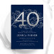 Elegant Navy Blue Silver 40th Birthday Invitation