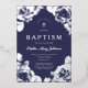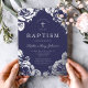 Personalized Elegant Navy Blue Silver Floral Boy Baptism Foil Invitation.