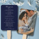 Elegant Navy Blue & Silver Script Wedding Program Hand Fan