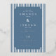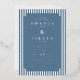 This elegant wedding invitation features a classic design with vertical stripes framing the central navy blue panel, creating a sophisticated and formal look. The colour palette of deep navy blue and white exudes tradition and timelessness, while the serif typography adds to its refined charm. Decorative corner accents enhance the overall elegance, making it perfect for a memorable celebration. Customizable text allows personalization for names, dates, and locations, ensuring each detail is tailored to the special occasion. Ideal for couples seeking a traditional yet stylish invitation for their wedding festivities.