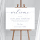 Welcome your guests to the ceremony with this elegant welcome wedding sign. Design with an exquisite mixture of modern handwritten calligraphy and block typography in an attractive navy blue tone. Available in many size options. Ability to edit the text colour by selecting the "Edit Using Design Tool" button. IMPORTANT NOTE: This sign is in premium poster paper style, easy to frame or glue/staple to inexpensive MDF or foam board for display. If you prefer this sign prepared for display already on a foam board, please follow these easy steps: on this sign product page, scroll up, until you see a section with images called "Transfer design to a product". Use the arrow on the images to look at all the options, until you reach the "Foam Boards" option. Click on it, and it will transfer the design into a foam board for you. Initially, sometimes it transfers the design into a very big foam board size, nevertheless, you can change the sign into the size you need right there on the product page and even see how it looks already in a stand. When you add this design to your shopping cart, it will tell you the back side is blank. Don't worry about it, as this only means that the back of the sign will be white. If you need help, please message me and I'll get back to you as soon as possible". Part of our "Navy Blue Watercolor Botanical Monogram Wedding" collection with various coordinating products available.