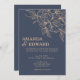 An elegant dark blue wedding invitation. The effective flower pattern gives this invitation a classy look.