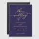 Elegant Gold Calligraphy Navy Blue Wedding Magnetic Invitation