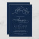 This rehearsal dinner invitation features a rich navy blue background with clean white text. Delicate eucalyptus spring line art adds a soft botanical accent. The design is elegant, modern, and easy to read. It works well with navy blue or greenery wedding themes and creates a polished look for pre-wedding events.