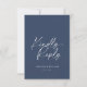 This elegant navy blue RSVP card features a sophisticated and modern calligraphy design with "Kindly Reply" in stylish white script. A convenient QR code allows guests to easily RSVP and select their meal preferences online. Personalized with the couple's names and wedding date, this refined invitation response card is perfect for formal and timeless wedding themes. A modern and stylish way to collect guest responses while adding a touch of elegance to your wedding stationery.