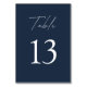 Add a touch of sophistication to your reception with this elegant navy blue wedding table number card. Designed with modern calligraphy and bold white typography, it makes your seating arrangements clear and stylish. Perfect for a classic, modern, or nautical wedding theme, these cards complement any wedding décor. Pair them with matching invitations, RSVP cards, menus, and thank you cards from the same navy blue wedding collection for a coordinated look.