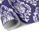 Elegant Navy Blue White Damask Pattern Luxury Wrapping Paper