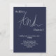 This elegant navy blue wedding invitation is perfect for a modern wedding. the simple design features elegant white calligraphy on a blue background.
