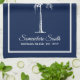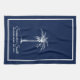 Add your own special touch to this simply elegant design featuring your family name or phrase and established date in white text and palm tree framed in a white border over a navy blue background.
