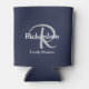Enjoy this elegant can cooler featuring your name over your monogram in modern script typography on a navy blue background. Text templates are provided for your monogram (in light grey), name and optional "Family Reunion" event (in white).