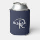 Elegant Navy Blue White Silver Grey Monogrammed Can Cooler