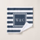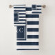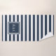 Elegant Navy Blue White Stripe Monogram Bath Towel Set