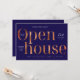 Create modern business invites for your real estate event or open house with this elegant navy blue and bronze gold effect Open House Invitation. This professional property sale event invitation features a minimal layout with bold serif fonts and space for your logo and custom event details.