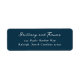 This return address label features a sophisticated and elegant design with a deep navy blue background that creates a striking contrast for the white script font. The layout is clean and minimalistic, focusing on the customizable names at the top in an elaborate cursive style, followed by a smaller serif font for the address, ensuring both elegance and readability. Perfect for formal occasions like weddings or significant announcements, this label exudes a classic and refined aesthetic, making it ideal for those seeking a polished and professional look.