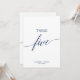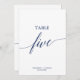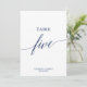 This elegant navy calligraphy table five table number is perfect for a simple wedding. The neutral design features a minimalist card decorated with romantic and whimsical typography. The card prints on the front and back (double-sided). Other table numbers in the collection are sold separately.