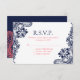 Elegant Navy & Coral Lace Wedding Response Cards. An Elegant design with a classic navy background, embellished with coral lace and flowers. This coordinates with our Elegant Lace Wedding Collection.