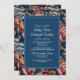 Elegant Navy Floral Teal RSVP QR code Wedding Invitation