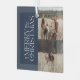 Elegant multi photo modern minimal navy blue watercolor botanical typography Merry Christmas holiday decor ornament.