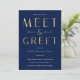 Create stylish networking event invites for your business with this elegant faux gold Meet & Greet Invitation design. This navy blue and gold effect company invite is great to use for social company events, dinner & drinks events and more. Featuring bold gold typography design and dark navy background, this business event marketing flyer allows you to edit the event details and background color so you can tailor it to suit your brand and event aesthetic.