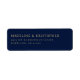 This return address label features a sophisticated and elegant design with a simple, centered layout on a deep navy blue background. The gold serif typography adds a touch of luxury and formality, making it perfect for official or ceremonial occasions. The clean lines and ample negative space create a balanced and refined look, ideal for those seeking understated elegance in their stationery. Customizable text allows for personalization, ensuring this label meets your specific needs while maintaining its classic appeal.