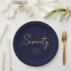 Celebrate a milestone in style with this elegant navy blue party plate featuring a chic gold “Seventy” script. Perfect for 70th birthday celebrations, adult parties, and classy milestone events. Personalize the name and date to create a unique, memorable touch for your special occasion. Ideal for women or men who love modern, minimalist luxury designs.