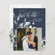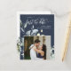 Elegant Navy Green Leaves QR Code Save the Date Announcement Postcard