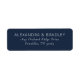 These return address labels feature a sophisticated and minimalist design with a deep navy blue background that exudes elegance. The clean, modern serif typography is centered for a balanced look, making it easy to customize with your name and address. Perfect for formal invitations or professional correspondence, the simple layout ensures clarity while maintaining a classic feel. The absence of additional graphics keeps the focus on the essential information, ideal for those who appreciate timeless style.