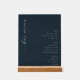This elegant wedding bar menu features a minimalist design with a deep navy background and off-white cursive script that reads "bar menu." The layout is vertically oriented, showcasing sections for beer, wine, and spirits in clean, sans-serif typography. The color palette of navy and muted tones creates a sophisticated and modern look, perfect for a high-end event. With ample negative space and neatly aligned text, the design conveys an atmosphere of understated luxury and contemporary style, ideal for enhancing any wedding celebration.