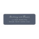 This elegant label features a clean, minimalist design with a deep navy blue background that contrasts beautifully with the crisp white text. The typography combines a flowing cursive script for the names and a structured serif font for the address, creating a sophisticated and formal look. Perfect for personalizing envelopes or packages, this label exudes an air of understated elegance, making it ideal for special occasions or professional correspondence. Its balanced layout and refined color palette ensure clarity and style in any setting.