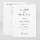 This wedding program features a clean, minimalist layout with ample negative space on a white background, creating an elegant and sophisticated look. The deep navy blue text contrasts beautifully against the backdrop, enhancing readability and formality. Utilizing crisp, vector-based typography, the design combines bold serif fonts for names with cursive script for "and," adding a touch of elegance. Perfect for couples seeking a modern yet traditional aesthetic, this program is ideal for weddings that celebrate clarity and simplicity.