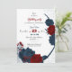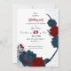 Elegant navy blue and red flowers and some beautiful leaves botanical birthday party invitation