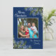 This chic navy Christmas card features your photo as well as elegant sprays of real snowflakes (my original snowflake photos) and winter greens, including pine and juniper berries. Customize the editable message from Merry Christmas to another if you prefer. Personalize with your family name. The reverse side has coordinating navy stripes and snowflakes; but if you prefer a solid colour or white on the back, feel free to "click to customize further" and delete the elements on the back layer. A beautiful photo card for any winter holiday!