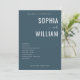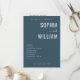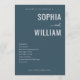 This wedding program features a sleek, modern design with a deep navy blue background and crisp white text. The layout is clean and organized, showcasing the couple's names in bold capital letters with an elegant cursive "and" connecting them. A structured list details the ceremony schedule, maintaining a formal yet inviting tone. Customizable date and location fields at the bottom allow for personalization, making this template perfect for couples seeking a sophisticated and straightforward aesthetic for their special day.