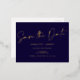 Modern elegant real gold foil script navy blue wedding save the date with a casual and cool script calligraphy .