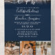 This modern and elegant wedding invitation and rsvp postcard bundle perfect for the contemporary couple. It features a pretty and trendy white monogram initial design with matching typography on top of a simple navy blue background. It also includes four photos of the lovely couple. It's minimalist, stylish, personal, and unique for your special event!