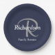 Elegant Navy White Silver Monogram Family Reunion Paper Plate