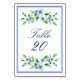 An elegant Navy & White Wedding Table Number Card, designed with navy text on a white background, bordered by bright blue and white flowers. Text includes: Table and Number. To personalize, select one card for each table, insert a number into the template and repeat for each card required. Note: both sides are identical - when you insert your number into the template, the number is automatically repeated on the reverse. Matching Wedding Menu and Place Cards in this Collection.