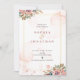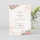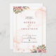These stunning wedding invitations feature a gold foil geometric frame surrounded by lush, watercolor neutral flowers in neutral, earth tones colours such as beige peach, dusty rose, and soft green with gold foil accents and leaves. An elegant boho floral look on a simple white background.