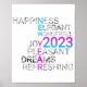 elegant new year 2023 quotes sayings in colourful colours and textured text typography with phrase happiness elegant wonderful joy pleasant dreams refreshing and hidden word NEW YEAR. Perfect for products, Such as:- Sticker, Poster, Banner, Gift card, Mug, Bag, Label, Phone Case, Notebook Cover and much more for Merry Christmas. Perfect for giving as a gift for father, mother, son, daughter, sister, brother, grandparents, boyfriend, girlfriend, husband, wife, uncle, teacher, family. For anyone who you love. Happy new year 2023.
