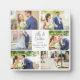 This beautiful newlywed couple wedding photo plaque gift features a classy layout of 6 wedding photos on a white background with the married couple's names, location, and date. A wonderful photo collage for newlyweds marriage or for a husband or wife anniversary present.