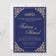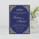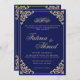 Elegant Navy Blue Islamic Wedding Invitation. Made for the Muslim couple to celebrate their Nikah or Shaadi marriage ceremony. There is a luxury gold script font on the front of the card. There is a vintage scroll filigree border in the corner. Edit the colour of the card and colour, type and size of the fonts with Zazzle's design tool. Many paper types available to choose from.