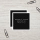 Un élégant carte de visite carré avec un arrière - plan noir, un texte blanc et une bordure blanche.