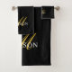 Un élégant monogramme d'or et de blanc sur une riche serviette noire pour rafraîchir votre décor de salle de bain avec ce style chic. Faites-en le vôtre avec votre prénom et votre initiale.