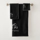 Elégant Noir & Blanc Nom Serviette de bain. Dispose d'un beau texte de Mme scripty et nom personnalisable en blanc sur noir. Un cadeau magnifique pour soi, les nouveaux mariés, les couples, idéal pour les anniversaires, les cadeaux de mariage, la nouvelle maison, les cadeaux de rénovation et d'autres occasions spéciales. Nous vous invitations à visiter notre magasin Zazzle, GJ Design Co, pour voir les produits correspondants et plus encore.