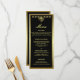 Un élégant menu de mariage d'or et de noir, avec des éléments dorés pour ajouter une touche d'élégance et de style à votre mariage ou autre occasion spéciale. Note du concepteur : tout peut être complètement customisé, des éléments dorés en haut du menu à la formulation de chaque cours. Changez (ou même supprimez) si vous le souhaitez. Le revers du menu affiche le monogramme du couple nuptial (qui peut aussi être modifié ou retiré complètement).