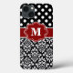 Montrez votre style de façon amusante avec ce élégant point rouge et noir et boîtier monogramme damassé.