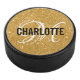 Puc monogrammé moderne avec un nom noir et un monogramme de script blanc sur un arrière - plan parties scintillant or. Personnalisez avec le nom et l'initiale.