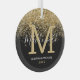 Monographie de famille en verre de noël avec un arrière - plan noir tendance, une élégante parties scintillant d'or design cascade, votre initiale, nom de famille, prénoms, et l'année.
