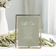 Numéro de table de réception moderne simple modèle et mariage, avec script de calligraphie, un élégant décor de réception, typographie chic, et feuilles botaniques verts, parfait pour une destination mariage tropicale, avec feuilles de palmiers, feuillage verdoyant, un design unique pour les mariages côtiers