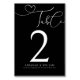 Élégant numéro de table Script moderne Mariage noir. Un design magnifique avec des noms de couple et des dattes mariages avec un script "table" décoratif avec un accent de coeur d'amour. Texte blanc sur noir. Customisez avec votre numéro de table et les détails du mariage. Toutes les polices, le texte, les couleurs sont personnalisables. Nous vous invitations à visiter notre magasin Zazzle, Austen & Grace, pour voir la suite mariage complète, les produits assortis et plus encore. Veuillez nous contacter si vous avez besoin d'aide.